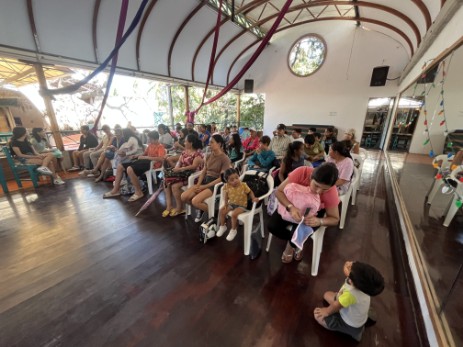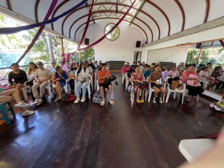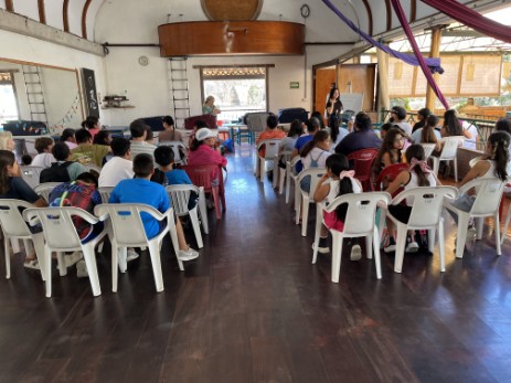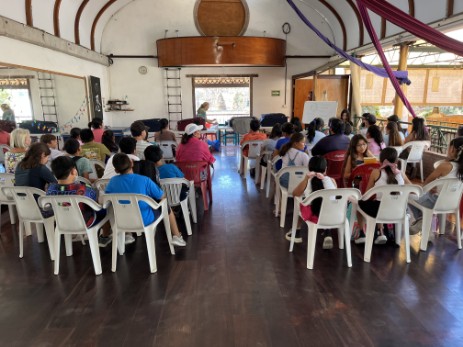 Della gives a bookbags to all students - English School of La Cruz